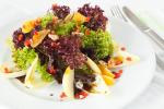 7. Verfeinern Sie den Salat mit einem Dressing aus dem Orangensaft, mildem Essig, Kürbiskernöl und Salz und Pfeffer.